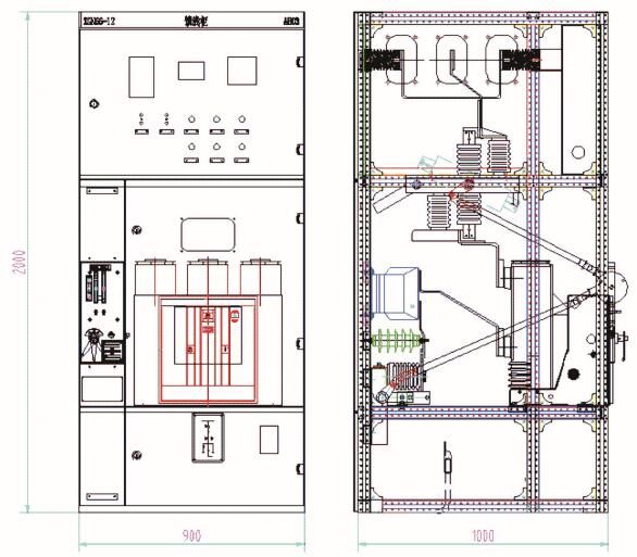 開關(guān)柜柜體為箱型固定式結(jié)構(gòu),柜體框架由覆鋁鋅板經(jīng)過數(shù)控機(jī)床加工成C型型材及聯(lián)接附件組裝而成,開關(guān)柜的后上部為母線室、前上部為低壓繼電器室,柜頂后部為壓力釋放通道,柜頂前部為小母線室;開關(guān)柜中下部貫通,母線室通過中上部的GN30旋轉(zhuǎn)隔離開關(guān)作為電源引入點(diǎn),中部安裝真空斷路器、下后部安裝互感器及接地開關(guān);隔離開關(guān)操動(dòng)機(jī)構(gòu)及機(jī)械閉鎖裝置在柜體前中部的左側(cè)安裝,隔離開關(guān)與真空斷路器及柜門之間安裝有強(qiáng)制閉鎖裝置,滿足產(chǎn)品“五防”要求;柜體的后底部安裝有專用接地母線TMY-40×4,*設(shè)備能夠*可靠接地