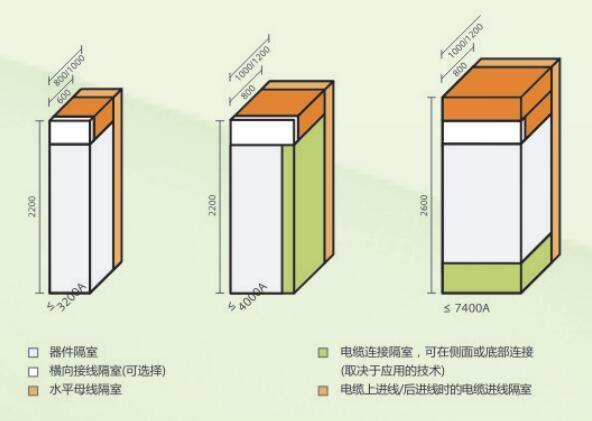 ●器件可任意裝入器件隔室,它與水平母線系統(tǒng)和開關(guān)柜的深度尺寸無關(guān)